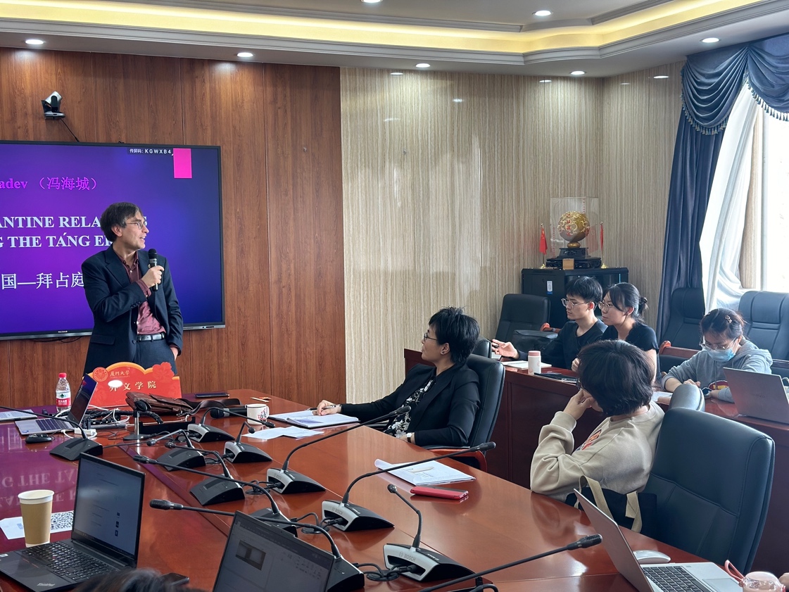 4月12日下午,厦门大学文明交流互鉴研究中心成功举办了主题为“唐代中国——拜占庭关系”的学术讲座。本次讲座由外文学院副院长刘悦教授主持,中心成员及外文学院的师生积极参加了此次活动。