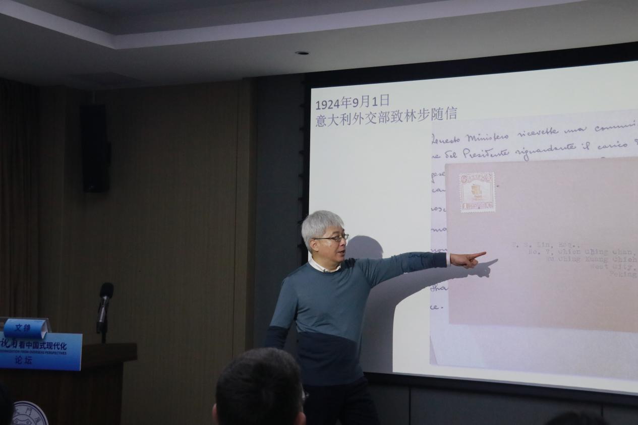 特邀嘉宾致辞环节,慕尼黑大学副校长叶翰(Hans van Ess)教授从自己翻译《论语》的经历谈起,阐释了自己对中国古文经典翻译的见解。他认为,翻译能力的不足越发成为阻碍国家间交流互鉴的因素。意大利罗马大学原副校长马西尼(Federico Masini)教授从“海外视角下的中国语文学习”视角切入,介绍了意大利与中国之间民间交往的历史脉络。马西尼教授将中意交流分为相对隔绝时期、汉朝民间贸易时期等四个主要阶段,展现了中意两国之间的交往的绵延赓续。