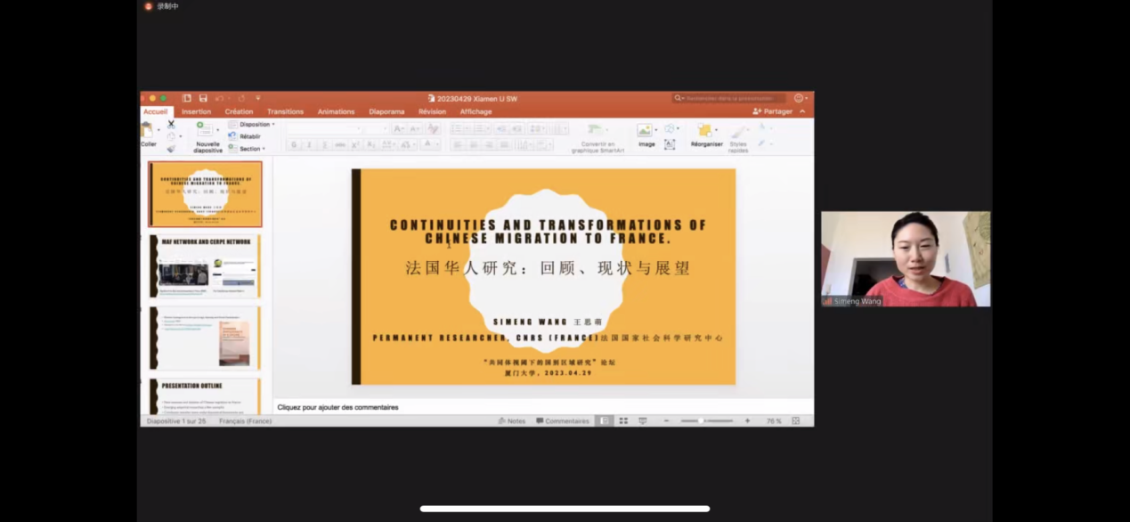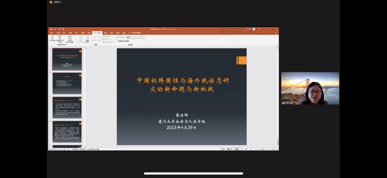 在“跨越边界与全球中国”专题论坛中,来自暨南大学的陈奕平教授提出随着中国融入世界进程的加速,海外中国公民和法人的利益维护,面临越来越复杂的新形势和新挑战,如何加强区域国别研究以赋能中国海外利益维护,是值得重视的研究课题;来自厦门大学的龚浩群教授用跨国性来概括今天中国和世界的连接方式,她指出中国的跨国性具有鲜明的时代特点,同时体量非常的巨大,而且对国外的地方社会构成了一定的冲击,因此要深入开展民族志的调查,在跨国流动现象当中发现自我和他者之间的关联性,龚教授指出了海外民族志研究的新命题和新挑战,提出要构筑中国、西方和对象国三方的知识体系,要从市场交互人类学推动世界社会的形成,要从单向度的凝视转变为互视的过程;来自南开大学的王炳钰教授作了题为“家庭与职业的双重时间,境外中国女性学者的生命历程”的报告,着重强调了性别化障碍,展示了过去十年间移民研究的“时间转向”,基于对境外中国学者的质性研究,从“历史与制度性时间”“生命历程时间”及“情境性时间”等角度,剖析跨境流动中的时间因素和时间力量如何交织于其流动决策、轨迹和愿景;来自云南大学的游天龙副教授为我们诠释了美式移民与边境治理的多重制度性困境,指出美国历届政府在处理非法移民这一兼具内政外交色彩的治理顽疾时的进退失据,是由美国移民边境治理体系的制度逻辑的历时性变迁、美国两党制围绕移民问题制造和加剧的极化现象和意识形态分裂、美国三权分立和联邦制所造成的制度张力,以及全球资本主义体系的运作规律所导致的,它成为美国政治整体衰败的一个表征。来自法国国家科学研究院的王思萌老师主要基于其本人近十多年来在法国主持的各项田野调查结果,为我们梳理了法国华人研究的历史、现状并作出展望,不同于传统的东南亚华人社群和北美华人社群,欧洲的华人社群有着自己的发展轨迹和特点,王老师指出欧洲境内海外华人跨国别比较和研究的重要性;来自丹麦奥胡斯大学朱梅(Mette Thunø)副教授指出欧洲是二战后华人移民的重要目的地,业已形成较大规模的华人移民社群,与传统的东南亚和北美华人社群不同,从整体上回顾了学界对欧洲华人的研究,展示了华人移民在欧洲经济活动和政治社会参与中的变迁。